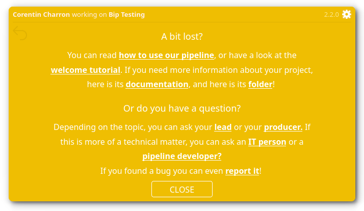 $PROJECT_DOCUMENTATION: Replace with the custom URL (if defined in the config)$QUICK_START: Replace with the custom URL (if defined in the config)$LAUNCHER_SHORTCUT: Replace with the Launcher shortcut binding$MESSAGE_IT: Replace with the user messaging URL (if the current project has an assigned IT contact)$MESSAGE_PIPELINE: Replace with the user messaging URL (if the current project has an assigned pipeline contact)$MESSAGE_PRODUCER: Replace with the user messaging URL (if the current project has an assigned producer contact)$MESSAGE_LEAD: Replace with the user messaging URL (if the current project has an assigned lead contact)